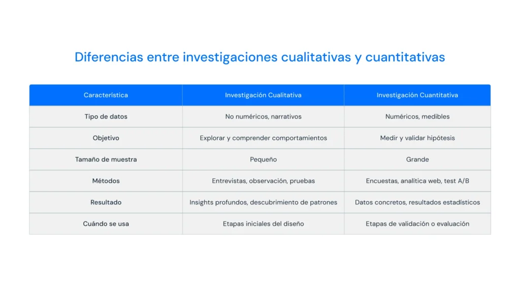 Entender las diferencias entre investigación cualitativa y cuantitativa es esencial para elegir el enfoque adecuado según el momento del diseño. Mientras que la cualitativa te ayuda a descubrir el por qué, la cuantitativa te muestra el cuánto y el cuándo.